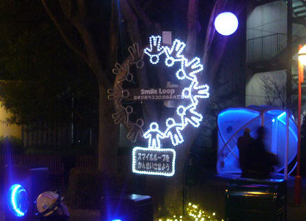 ハンドルを回すとオーナメントが点灯します。来場者参加型のエコイルミネーションを演出しました。